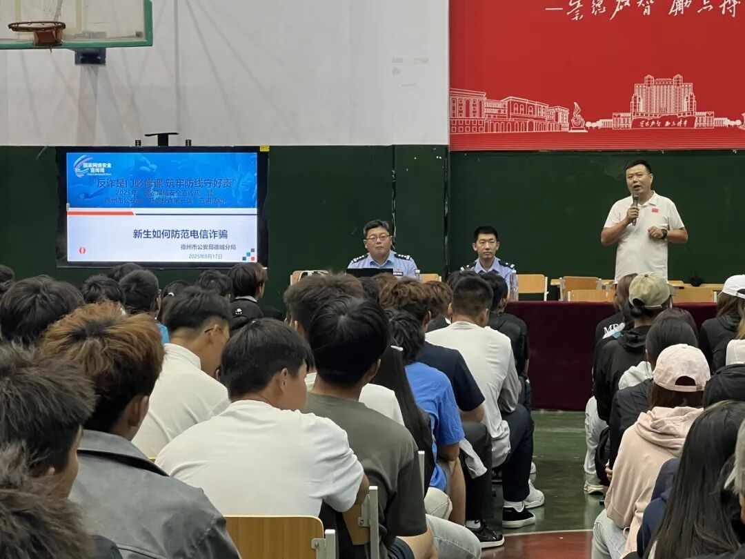 为确保防诈骗教育入脑入心,学院组织各班级召开了主题鲜明、内容扎实的防诈骗安全教育班会。同时还邀请了德州市公安局德城分局娄斌警官,以“反诈是门必修课 筑牢防线守好责”为主题给新生开展开学反诈第一课宣讲活动,活动主要重点介绍了校园常见的电诈类型,像以高日结为诱饵的刷单诈骗、冒充微信或抖音客服的诈骗,以及涉及虚假交易平台的游戏类诈骗;随后围绕电诈“工具人”展开,解释其定义和引流、资金、马仔等不同工作类型,详细说明“手机口”的操作方式与后果,还有帮信犯罪对应的法律及联合惩戒措施;之后针对高危兼职进行警示,分别提示境外高薪招聘中东南亚电诈园区的风险,以及假期高薪兼职索要“两卡”的陷阱,并给出正规务工渠道和正常兼职收入参考;还强调了核心防范要点,即管好“两卡一软件”、警惕境外暗网聊天工具,明确相关行为的危害;最后说明了预警劝阻机制,告知全国及德州本地的预警专线,以及触发预警的场景和需配合的要求。同学们积极参与,纷纷表示对诈骗行为有了更清醒的认识,自我保护能力得到有效提升。