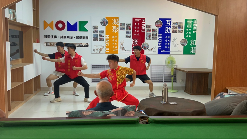随后,实践团队为社区居民表演了八极拳经典套路。表演者动作刚劲有力、气势磅礴,充分展现了八极拳“崩撼突击、以短制长”的技击特色,让现场居民直观感受到传统武术的独特魅力。