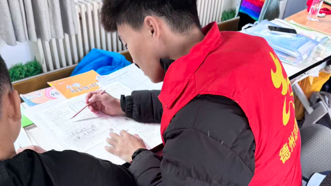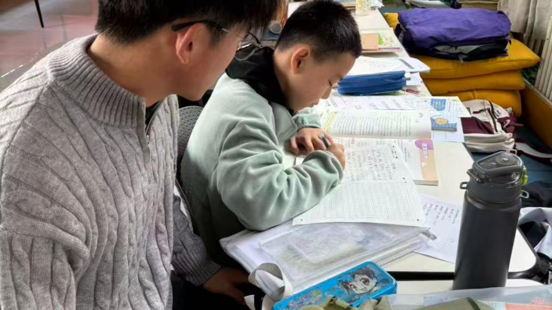 语文辅导环节,志愿者们聚焦“基础巩固+兴趣引导”。在字词听写部分,志愿者们放慢语速,逐字念读,遇到孩子写错的字,会在草稿纸上一笔一划示范书写;针对课文朗读,志愿者们先领读,纠正孩子的发音与断句,再鼓励孩子单独朗读,及时给予“读得很流利”“声音真好听”的肯定;面对造句难题,志愿者们从孩子的日常生活切入,引导他们用“开心”“朋友”等词造句,让语文学习更贴近生活,激发表达欲。