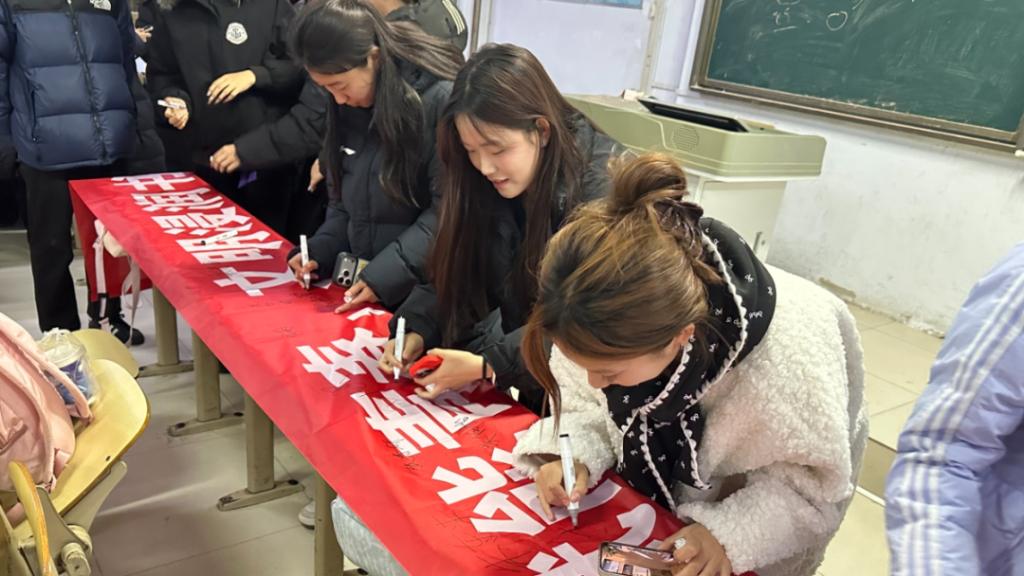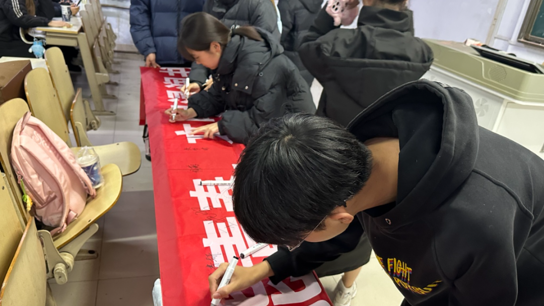 本次活动以“签名承诺”为核心载体,旨在通过庄重的仪式感,强化学生对体育精神与文明素养的内在认同。活动现场,印有“体育赋能青春,文明浸润书香”的红色横幅放置于醒目位置,营造出严肃而积极的氛围。各班级学生按预定顺序依次上前,以规范的书写在横幅上郑重签名。笔尖落下的不仅是姓名,更是青年学子对“以体育强体魄、以文明润心灵”理念的主动践行与责任担当。签名环节结束后,全体参与学生在横幅前进行集体合影,定格下践行倡议的青春瞬间。