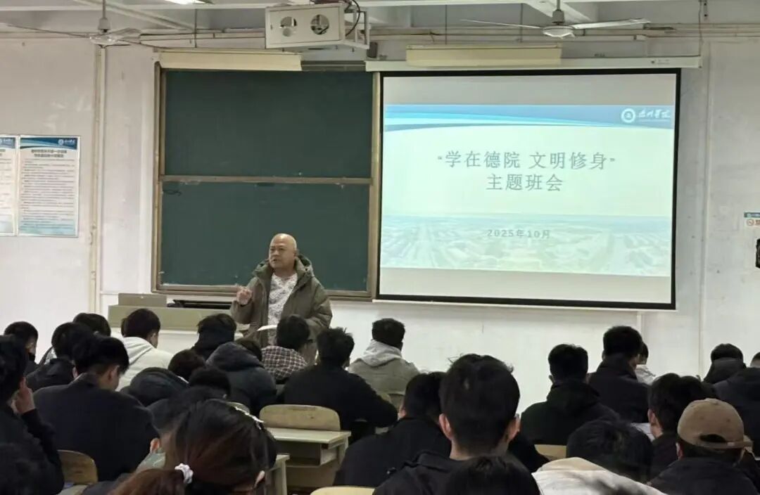 此次“学在德院,文明修身”主题教育班会,不仅让“学以正心,修以践行”的理念更 深入学生心间,更将“修身律己”的意识锚定在校园生活的实践坐标中,为涵养崇德尚礼的校园氛围、培育知行合一的青年学子筑牢了思想根基。